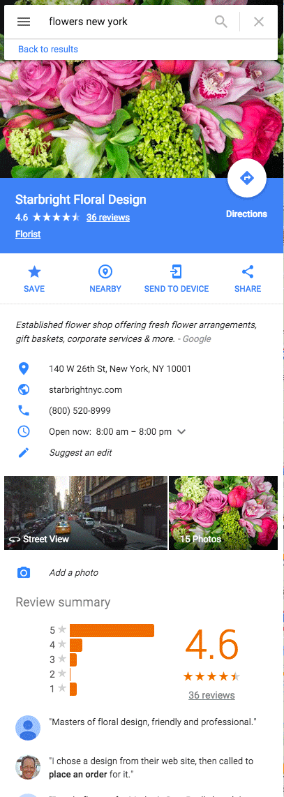 And also here is the Individual business listing when you actually click on one of the locations that you are searching for:
